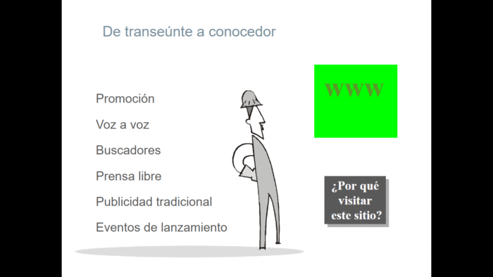 En síntesis, mi negocio no marchará si no logro que los transeúntes me conozcan (sepan que existo), me visiten, exploren con atención mi oferta, tengan una experiencia positiva de compra y sientan la urgencia de contarle a todo el mundo acerca de lo que les ocurrió al pasar por aquí.